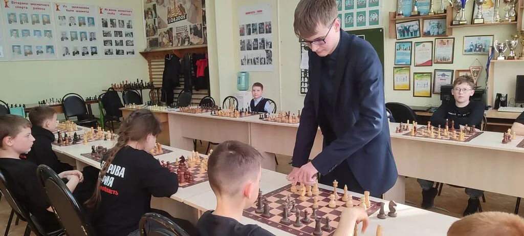 В роли чемпиона выступил Арсений Медведев — талантливый учащийся ДЮСШ, кандидат в мастера спорта, неоднократный победитель областных и Всероссийских шахматных турниров. Для участников это стало не просто соревнованием, а возможностью проверить свои стратегические и тактические способности в игре с сильнейшим.
